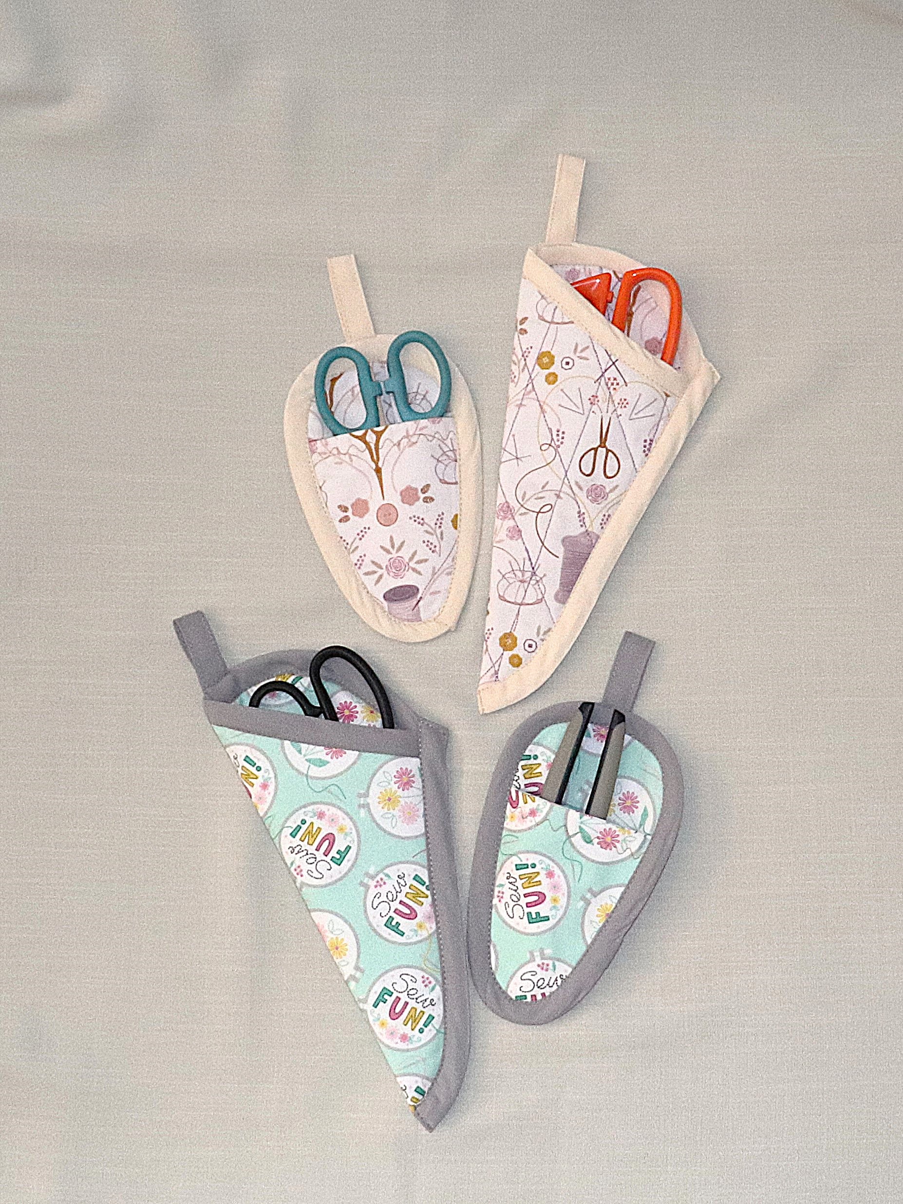 Cover for scissors free PDF pattern. Two pattern for 9″(23) cm and 6″(15 cm) are included. It is fun project. For this project you can use scrap fabric. Sewing instructions are included. Keep you scissors save!!